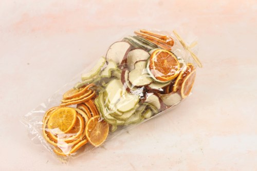 Citrus scented potpourri contains a mixture of dried chillies, dried apples and dried orange slices.