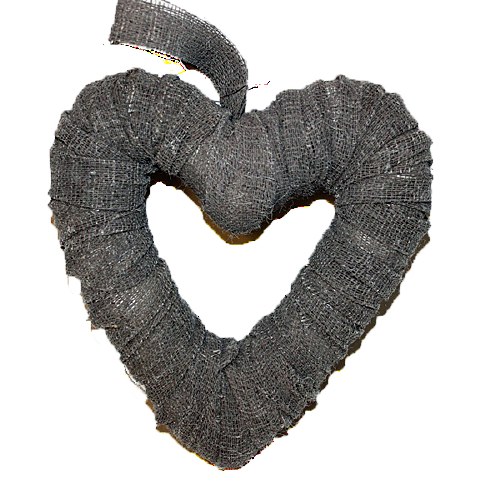 This grey linen padded hanging heart with cone rope is perfect for adding romance to any wedding venue or home. This popular shabby chic heart is easy to display on a wall or door.