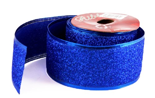 Glitter Ribbon Blue Wired Edge 5cm x 10Yards