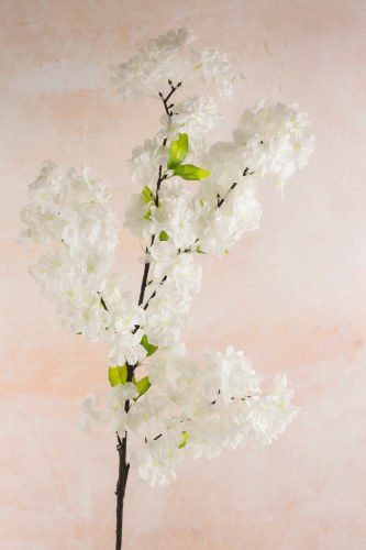 Add a touch of delicate beauty to your arrangements with this Artificial Cherry Blossom Stem in soft ivory. Standing at an impressive 100cm tall, it features 4 elegant sprigs joined on one main stem, each adorned with clusters of lifelike blossoms.