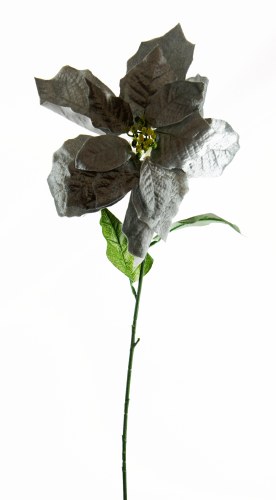 Faux Velvet Christmas Poinsettia Stem Silver/ Grey 76cm