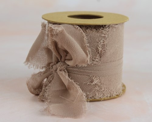 Chiffon Frayed Edge Ribbon 5cm x 5m Grey