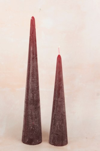 Add charm to your space with our rustic cone candle, featuring a natural, textured finish with intentional surface scratches for a handmade, vintage look. Each candle is sold individually. Two sizes shown in photo
