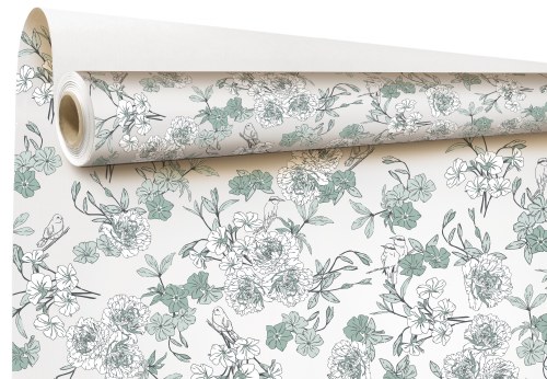 Kraft Paper Birdy Pattern – Green on White | 79cm x 25m | Water Resistant